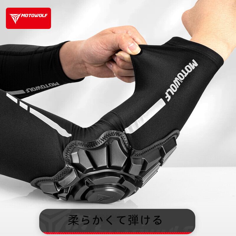 バイク肘プロテクター袖カバー オールシーズン 日焼け防止 転倒防止 ナイトガード袖タイプ 夏用通気 軽量 男女兼用