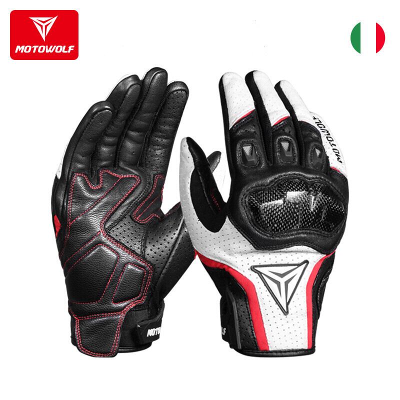 バイク本革プロテクショングローブ オフロードレーシング カーボンナックルガード パンチング通気 夏用 転倒防止 フルフィンガー ライディンググローブ